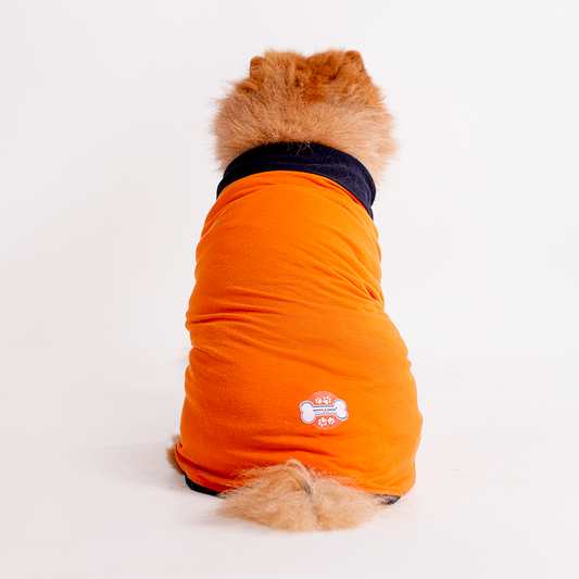 Orange Polo Dog Tshirt (Navy Blue Collar)
