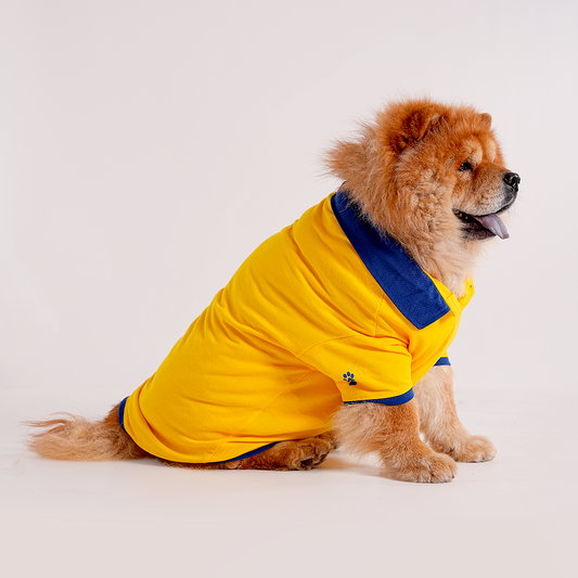 Yellow Polo Dog Tshirt (Royal Blue Collar)