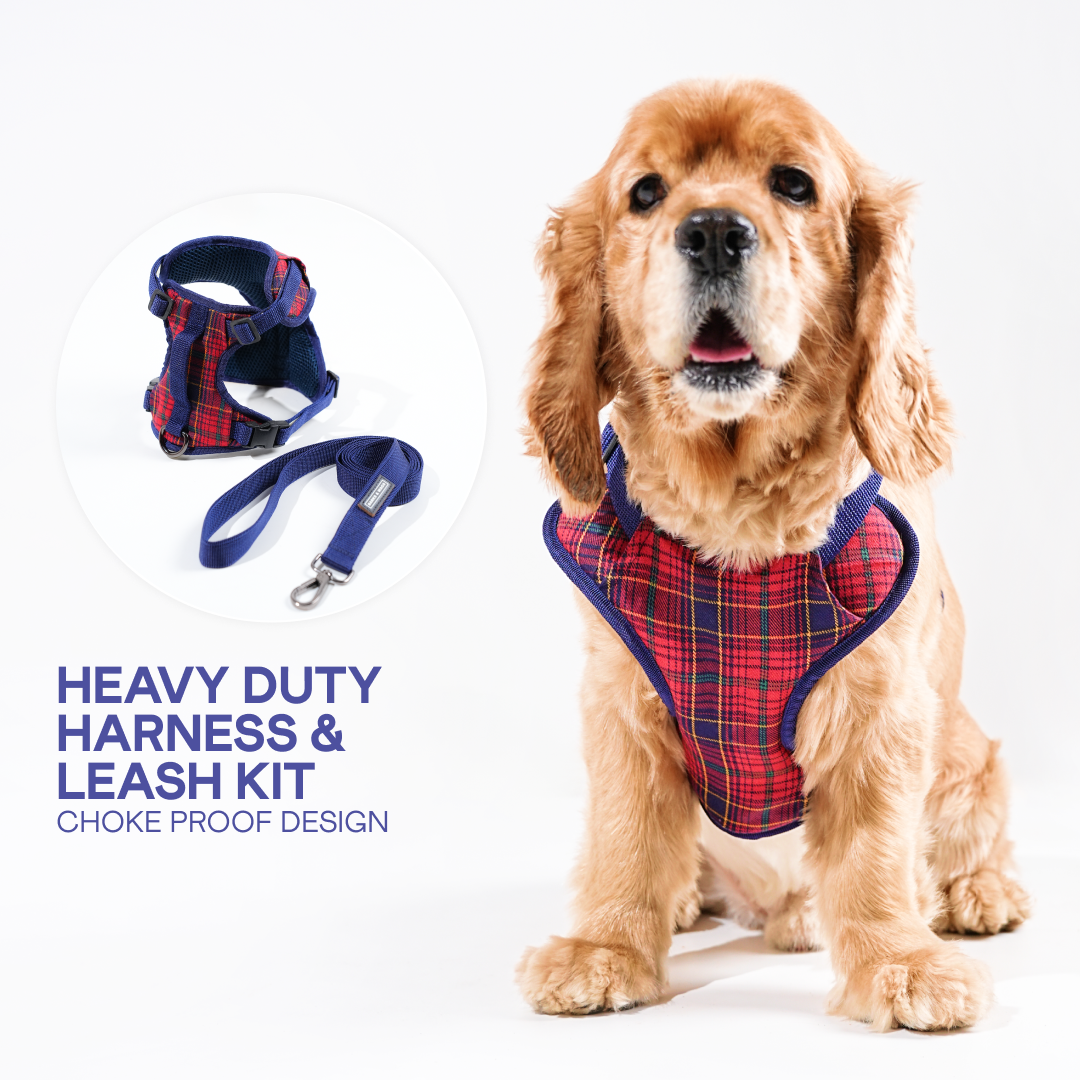 Heavy-duty harness kit for maximum comfort and zero choking- Thermapet Plaid