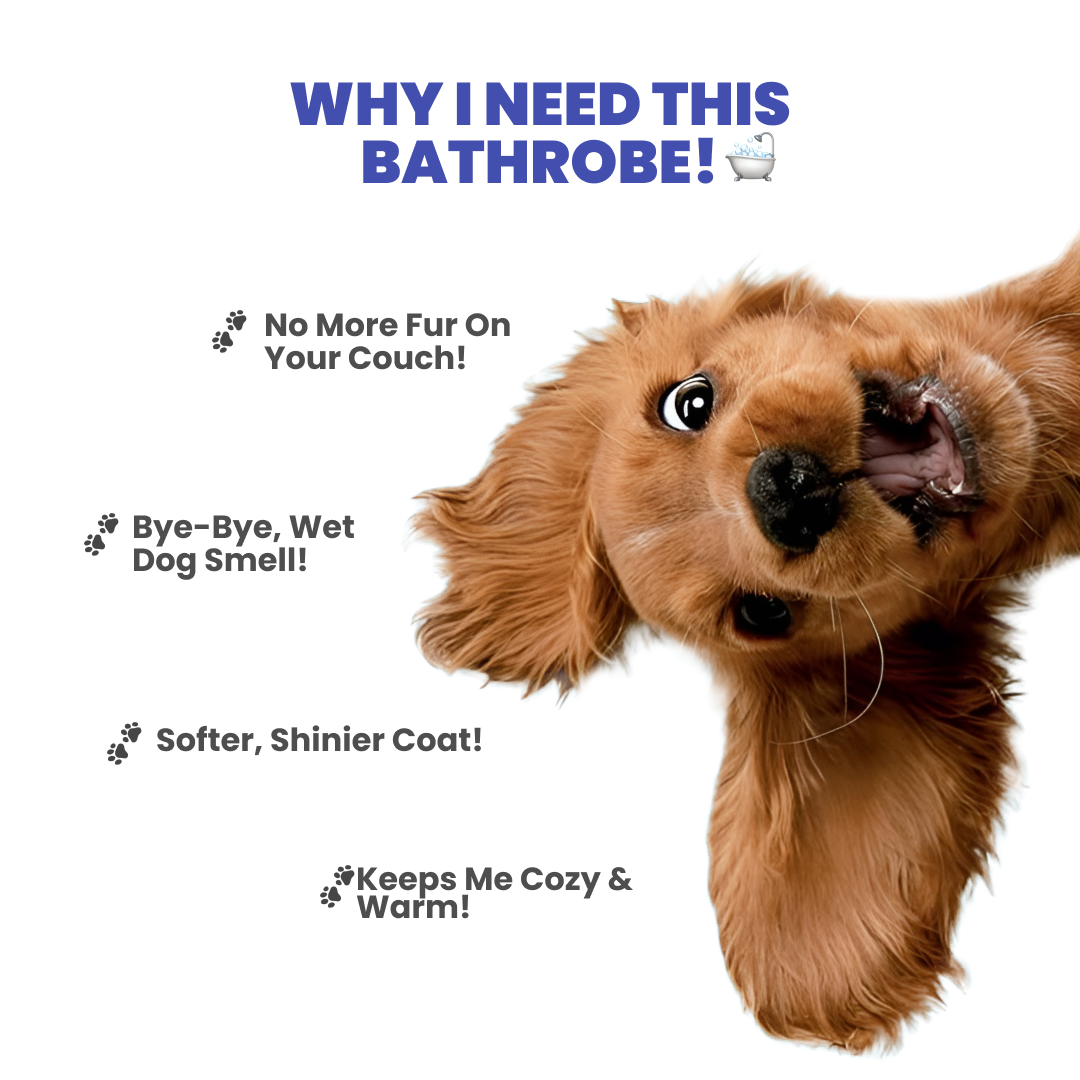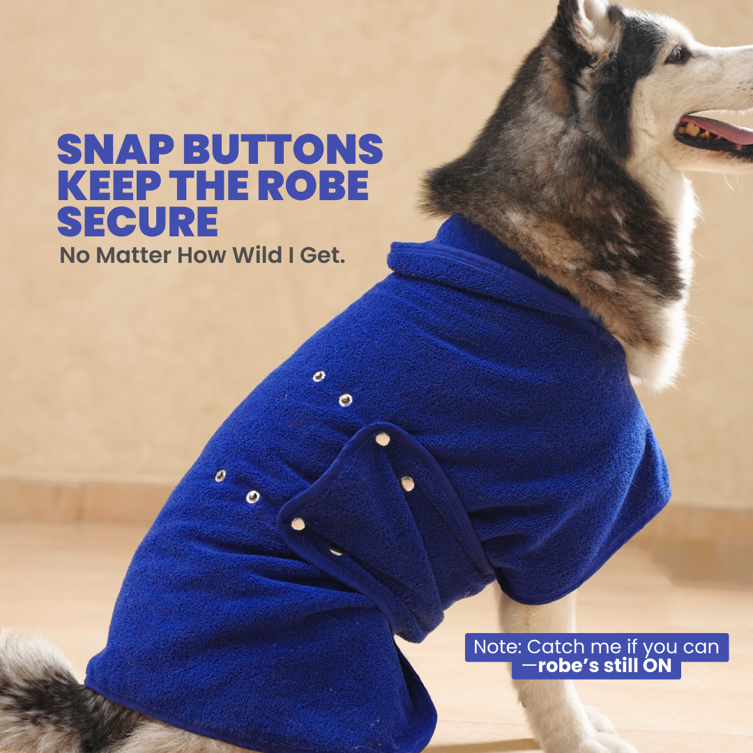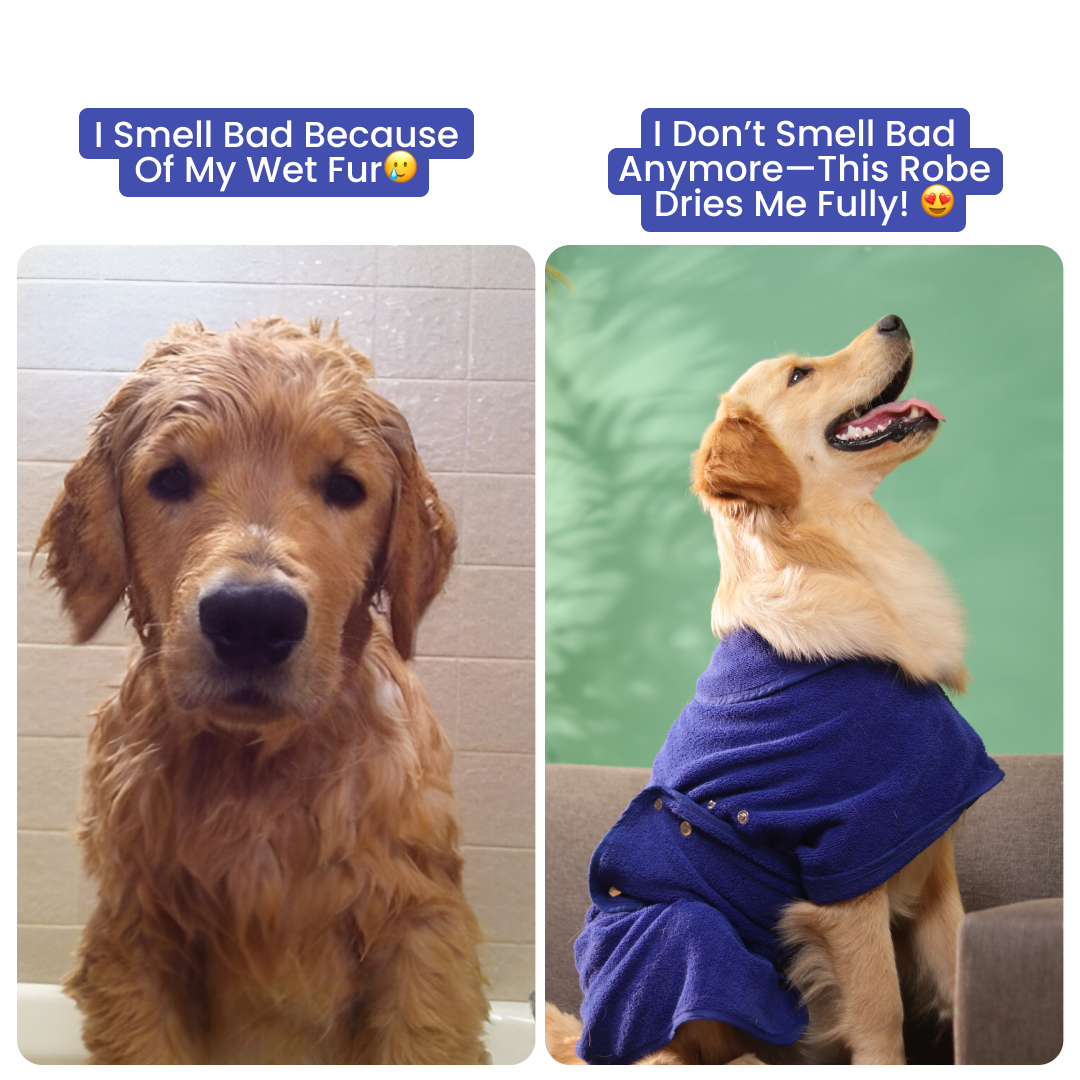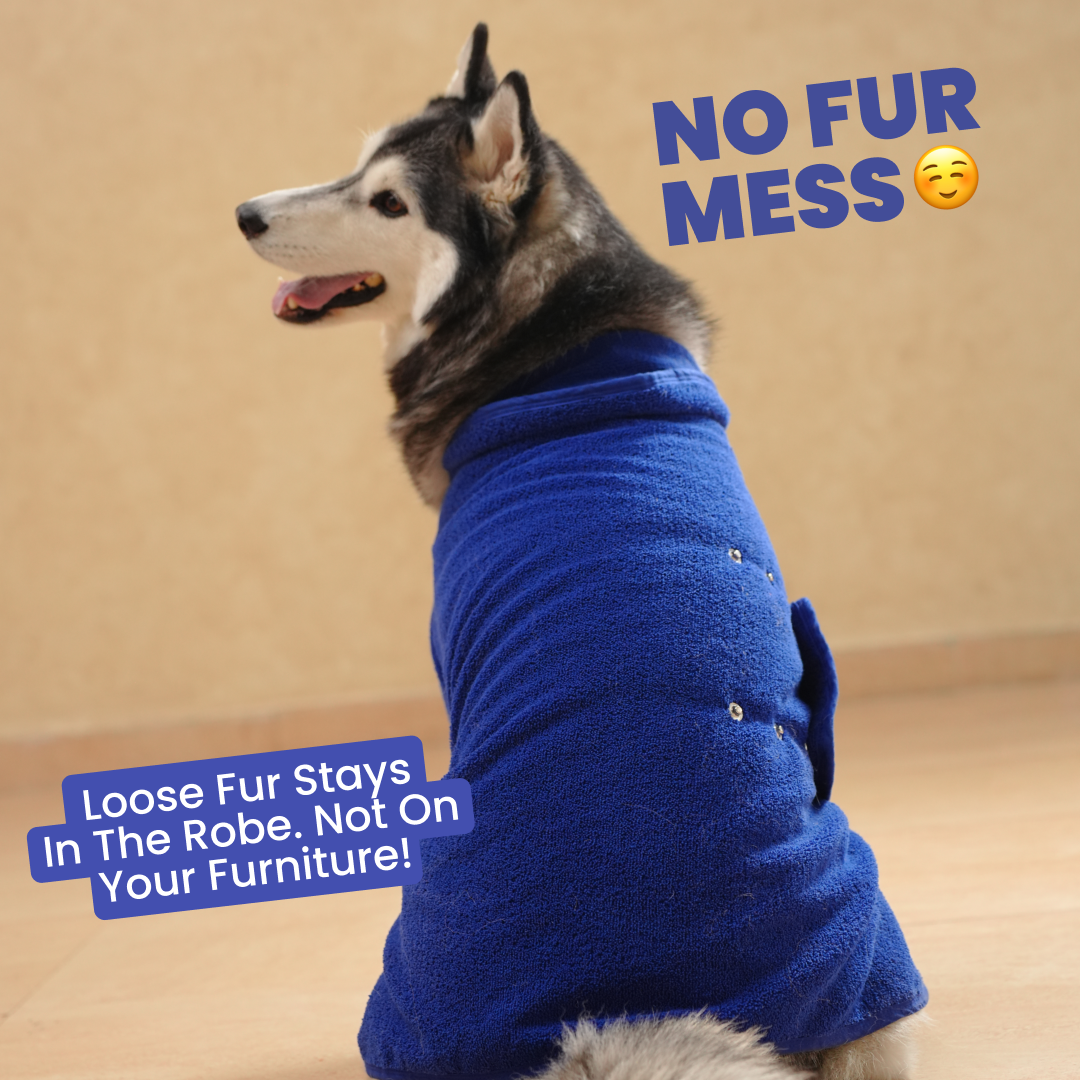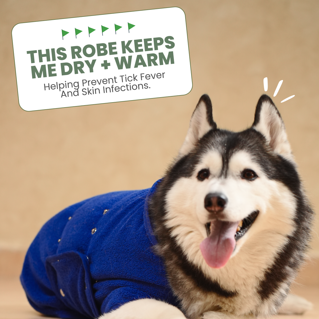 Keep your dog dry and warm after baths with the ultra-absorbent Micro Terry Fiber Dog Bathrobe. It absorbs water 10x faster than regular towels, helps prevent shedding, and eliminates damp fur odor.