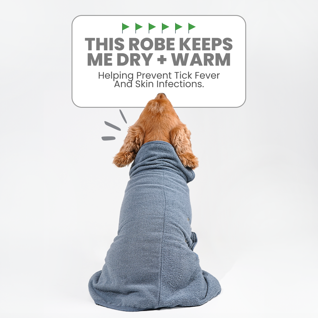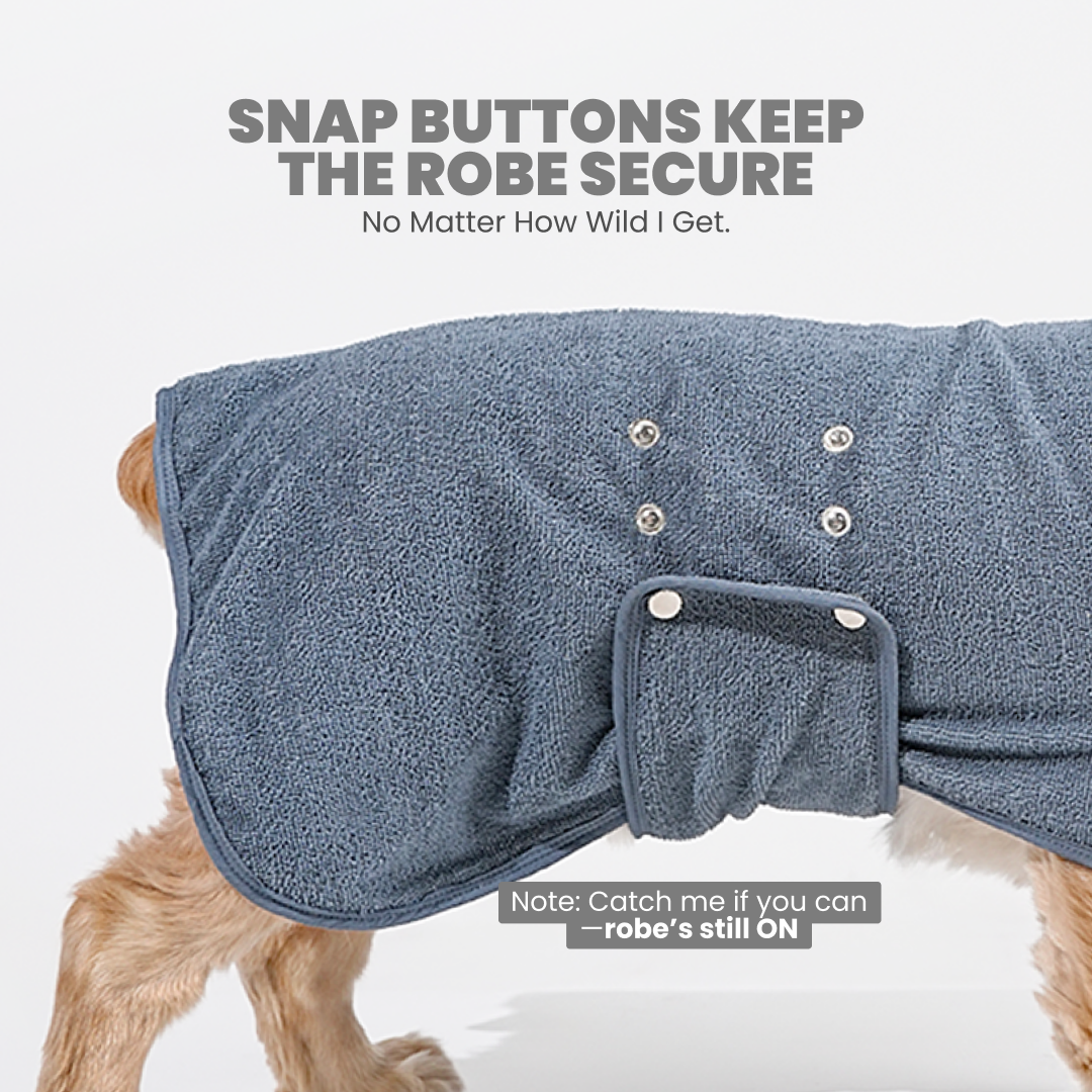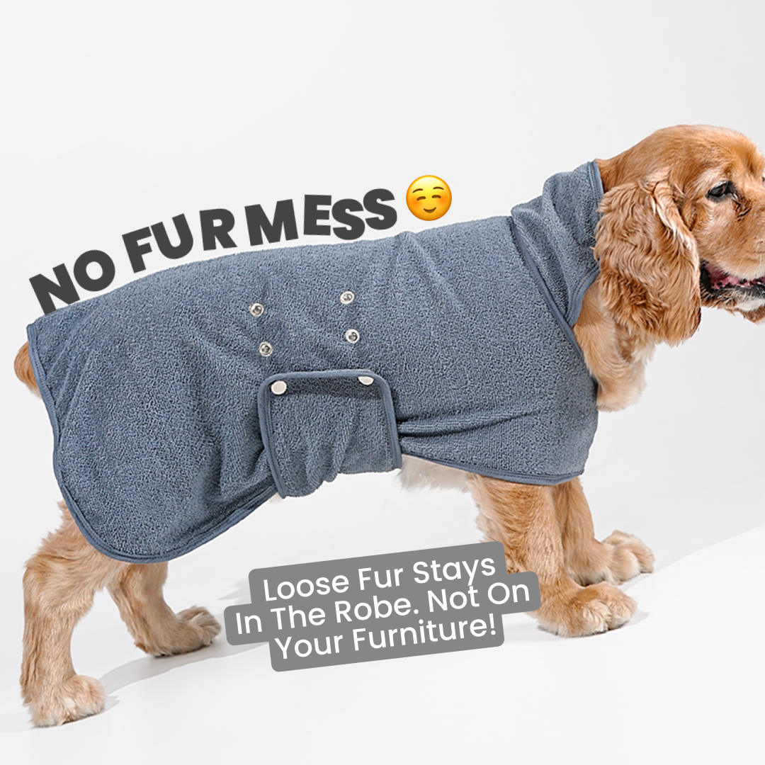 Keep your dog dry and warm after baths with the ultra-absorbent Micro Terry Fiber Dog Bathrobe. It absorbs water 10x faster than regular towels, helps prevent shedding, and eliminates damp fur odor.